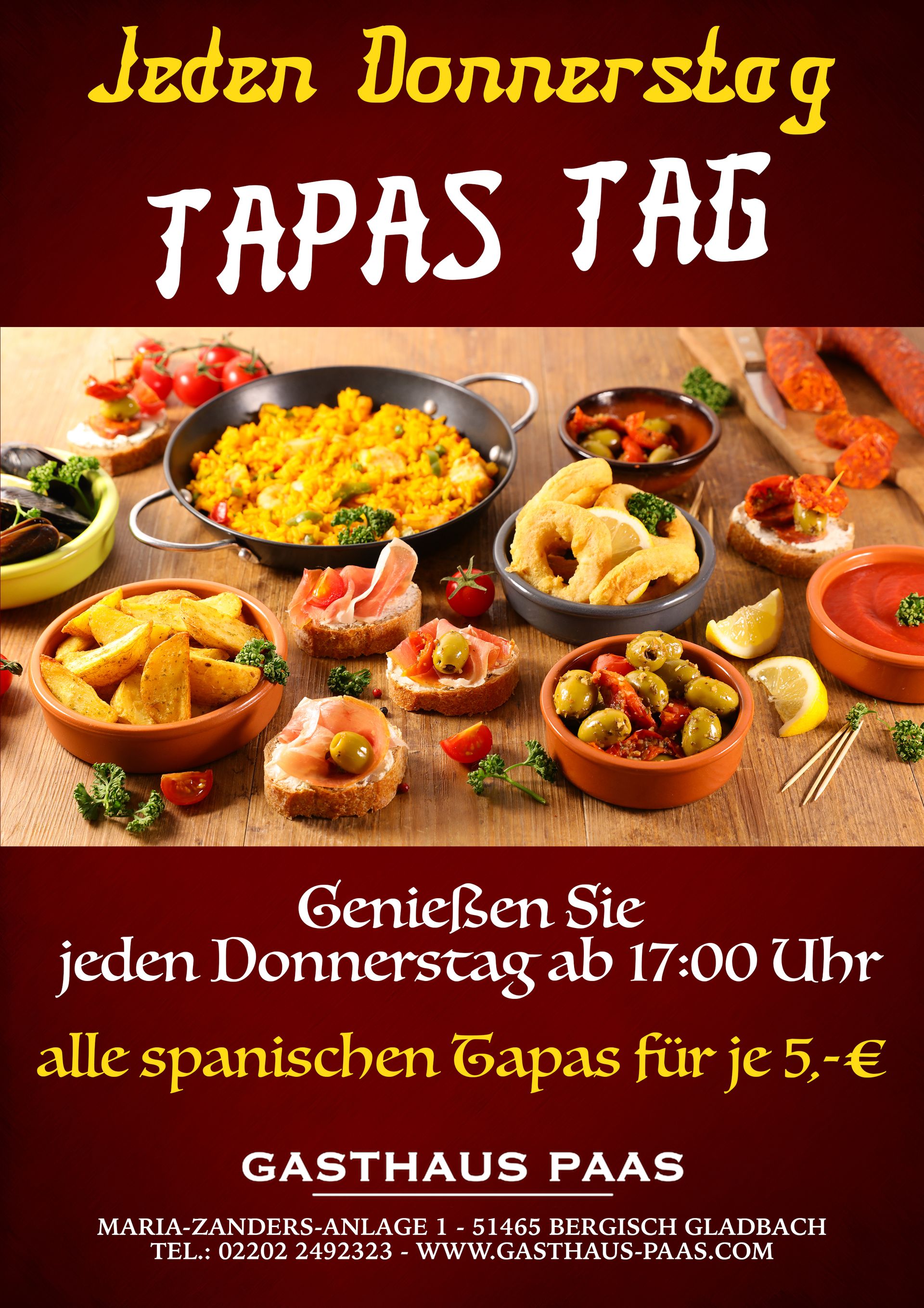 *** JEDEN DONNERSTAG AB 17:00 UHR TAPAS-TAG IM GASTHAUS PAAS***
