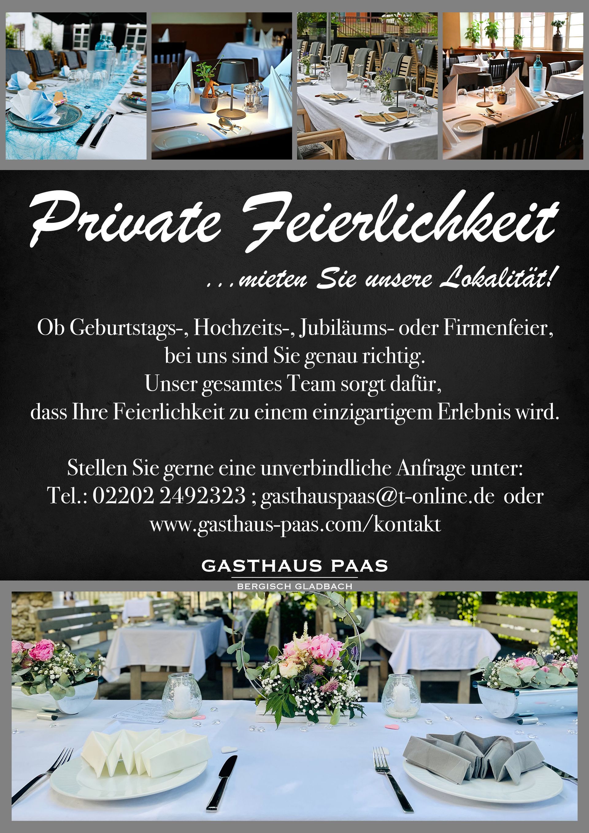 ***PRIVATE FEIERLICHKEITEN IM GASTHAUS PAAS***